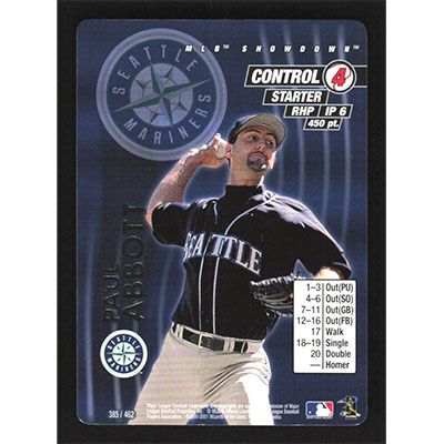 This is a 2001 MLB Showdown Unlimited Paul Abbott baseball card. The card is #385 and pictures show condition.