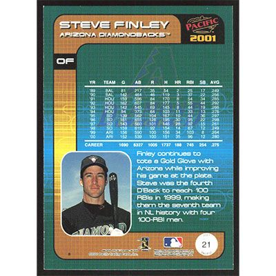 This is a 2001 Pacific Steve Finley baseball card. The card is #21 and pictures show condition.