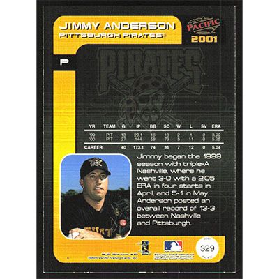 This is a 2001 Pacific Jimmy Anderson baseball card. The card is #329 and pictures show condition.