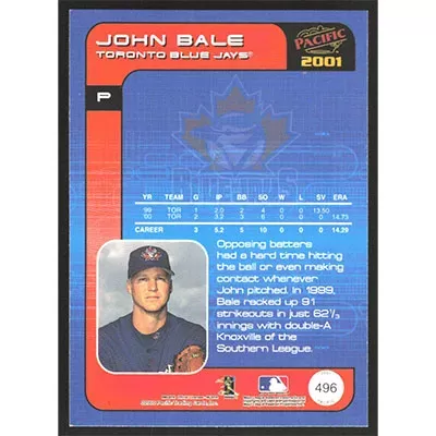This is a 2001 Pacific John Bale baseball card. The card is #496 and pictures show condition.