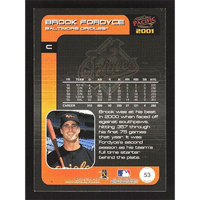 This is a 2001 Pacific Brook Fordyce baseball card. The card is #53 and pictures show condition.