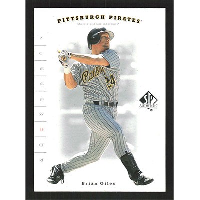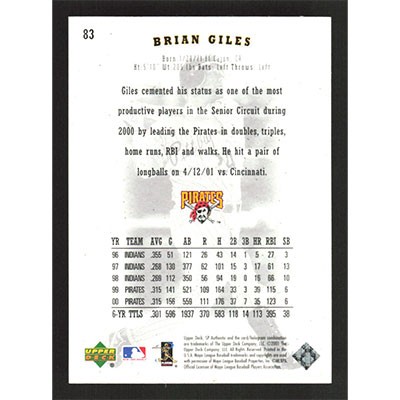 This is a 2001 SP Authentic Brian Giles baseball card. The card is #83 and pictures show condition.