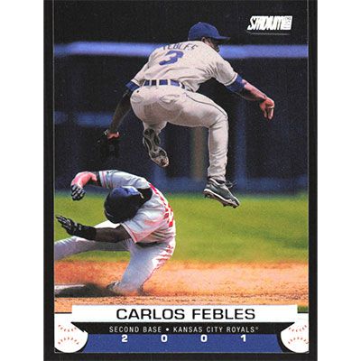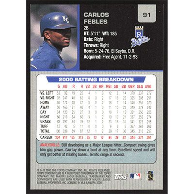 This is a 2001 Stadium Club Carlos Febles baseball card. The card is #91 and pictures show condition.