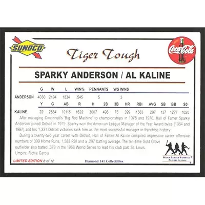 This is a 2001 Sunoco Dream Team Sparky Anderson and Al Kaline baseball card. The card is #8 and pictures show condition.