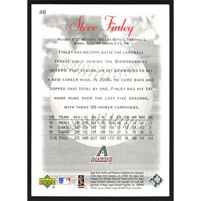 This is a 2001 Sweet Spot Steve Finley baseball card. The card is #40 and pictures show condition.