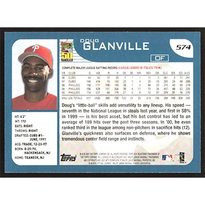 This is a 2001 Topps Doug Glanville baseball card. The card is #574 and pictures show condition.