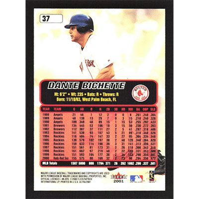 This is a 2001 Ultra Dante Bichette baseball card. The card is #37 and pictures show condition.