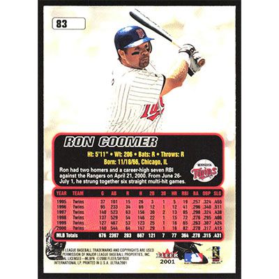 This is a 2001 Ultra Ron Coomer baseball card. The card is #83 and pictures show condition.