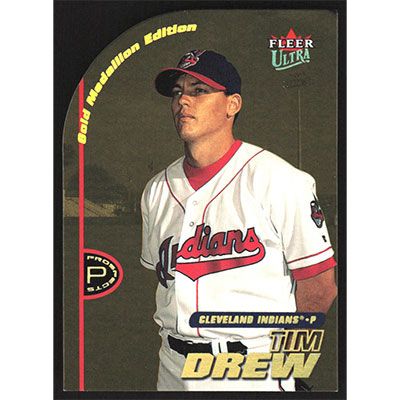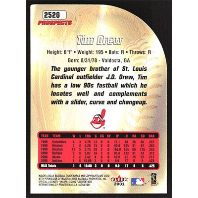 This is a 2001 Ultra Gold Medallion Tim Drew Prospects baseball card. The card is #252 and pictures show condition.