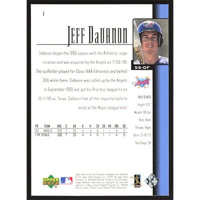 This is a 2001 Upper Deck Jeff DaVanon Star Rookies baseball card. The card is #1 and pictures show condition.