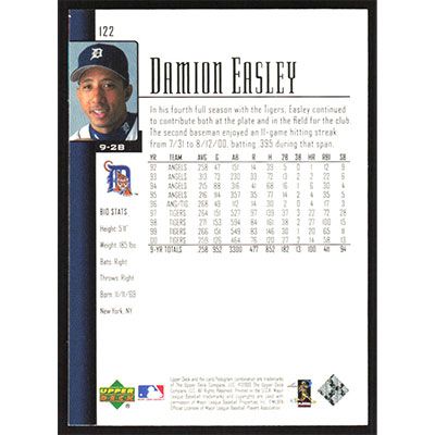 This is a 2001 Upper Deck Damion Easley baseball card. The card is #122 and pictures show condition.