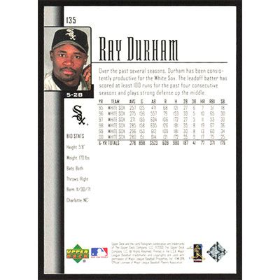 This is a 2001 Upper Deck Ray Durham baseball card. The card is #135 and pictures show condition.