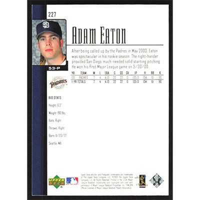 This is a 2001 Upper Deck Adam Eaton baseball card. The card is #227 and pictures show condition.