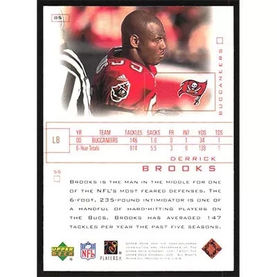 This is a 2001 Upper Deck Pros & Prospects Derrick Brooks football card. The card is #85 and pictures show condition.