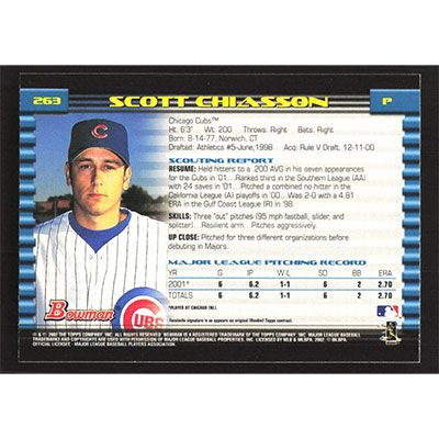 This is a 2002 Bowman Scott Chiasson baseball card. The card is #263 and pictures show condition.