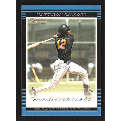 This is a 2002 Bowman Napoleon Calzado baseball card. The card is #424 and pictures show condition.