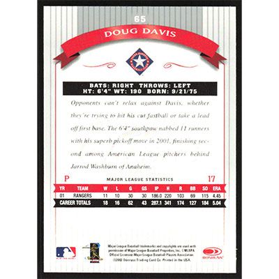 This is a 2002 Donruss Classics Doug Davis baseball card. The card is #65 and pictures show condition.