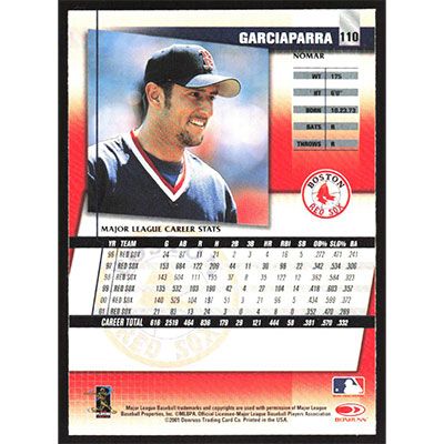 This is a 2002 Donruss Fan Club Nomar Garciaparra baseball card. The card is #110 and pictures show condition.