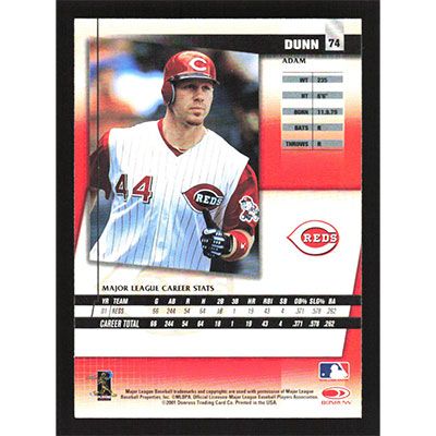 This is a 2002 Donruss Fan Club Adam Dunn baseball card. The card is #74 and pictures show condition.