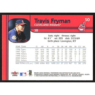 This is a 2002 Fleer Maximum Travis Fryman baseball card. The card is #50 and pictures show condition.