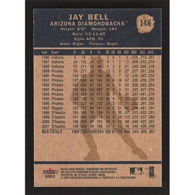 This is a 2002 Fleer Tradition Jay Bell baseball card. The card is #146 and pictures show condition.