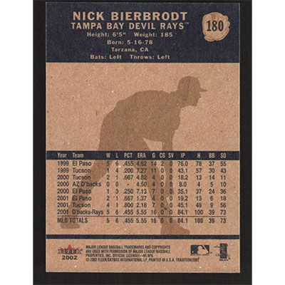 This is a 2002 Fleer Tradition Nick Bierbrodt baseball card. The card is #180 and pictures show condition.