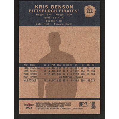 This is a 2002 Fleer Tradition Kris Benson baseball card. The card is #211 and pictures show condition.