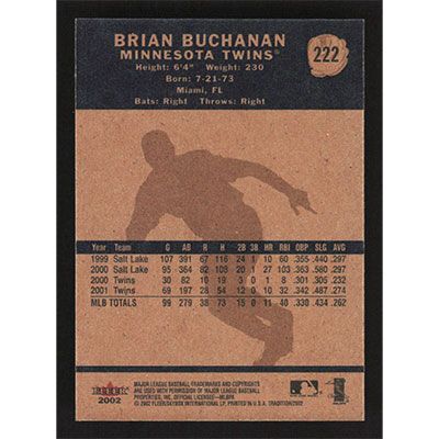 This is a 2002 Fleer Tradition Brian Buchanan baseball card. The card is #222 and pictures show condition.
