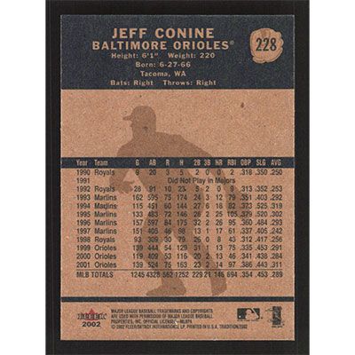 This is a 2002 Fleer Tradition Jeff Conine baseball card. The card is #228 and pictures show condition.