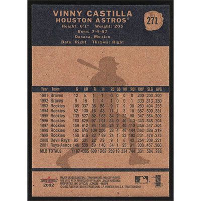 This is a 2002 Fleer Tradition Vinny Castilla baseball card. The card is #271 and pictures show condition.