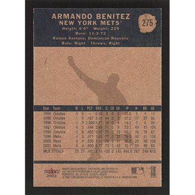 This is a 2002 Fleer Tradition Armando Benitez baseball card. The card is #275 and pictures show condition.