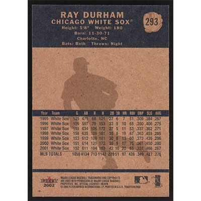 This is a 2002 Fleer Tradition Ray Durham baseball card. The card is #293 and pictures show condition.