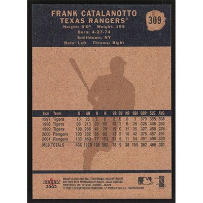 This is a 2002 Fleer Tradition Frank Catalanotto baseball card. The card is #309 and pictures show condition.