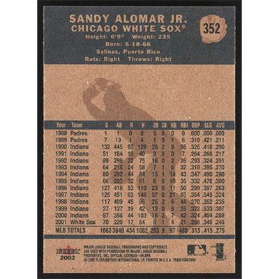 This is a 2002 Fleer Tradition Sandy Alomar Jr. baseball card. The card is #352 and pictures show condition.