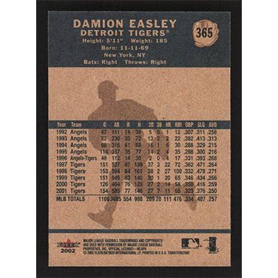 This is a 2002 Fleer Tradition Damion Easley baseball card. The card is #365 and pictures show condition.