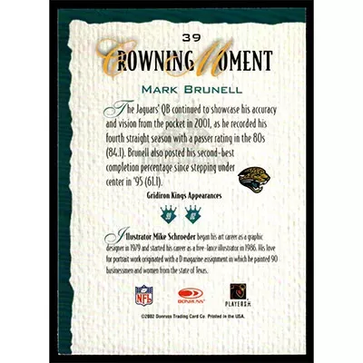 This is a 2002 Gridiron Kings Mark Brunell football card. The card is #39 and pictures show condition.