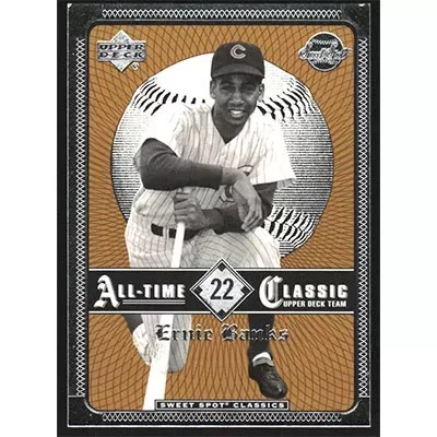 This is a 2002 Sweet Spot Classics Ernie Banks baseball card. The card is #22 and pictures show condition.
