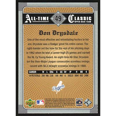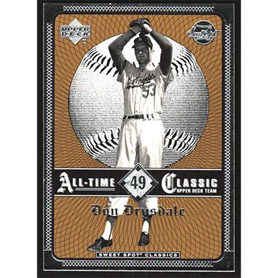 This is a 2002 Sweet Spot Classics Don Drysdale baseball card. The card is #49 and pictures show condition.