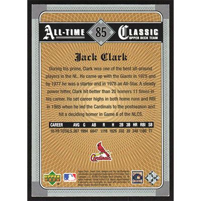 This is a 2002 Sweet Spot Classics Jack Clark baseball card. The card is #85 and pictures show condition.