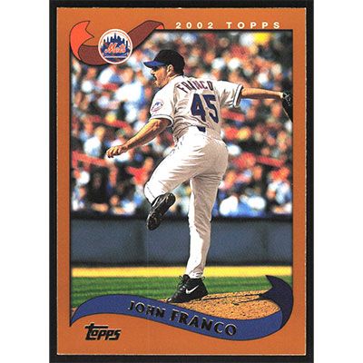 This is a 2002 Topps John Franco baseball card. The card is #182 and pictures show condition.