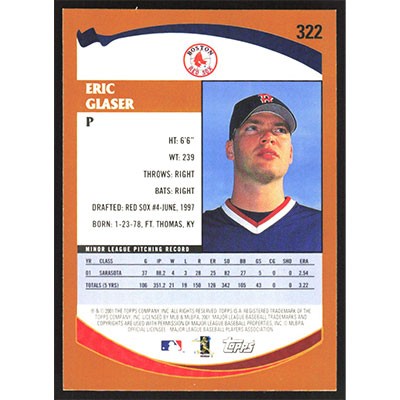 This is a 2002 Topps Eric Glaser Prospects baseball card. The card is #322 and pictures show condition.