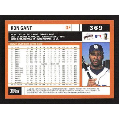 This is a 2002 Topps Ron Gant baseball card. The card is #369 and pictures show condition.