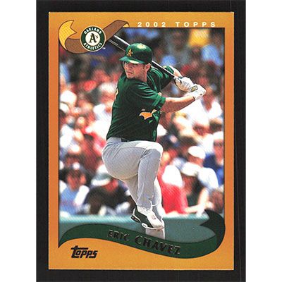 This is a 2002 Topps Eric Chavez baseball card. The card is #380 and pictures show condition.