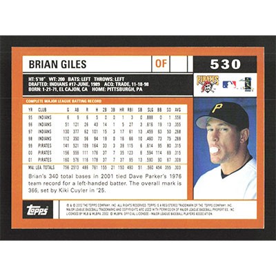 This is a 2002 Topps Brian Giles baseball card. The card is #530 and pictures show condition.