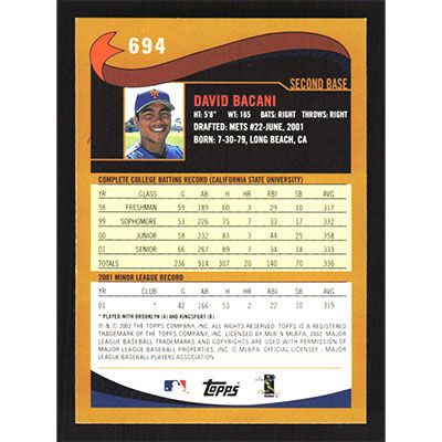 This is a 2002 Topps David Bacani Draft Picks baseball card. The card is #694 and pictures show condition.