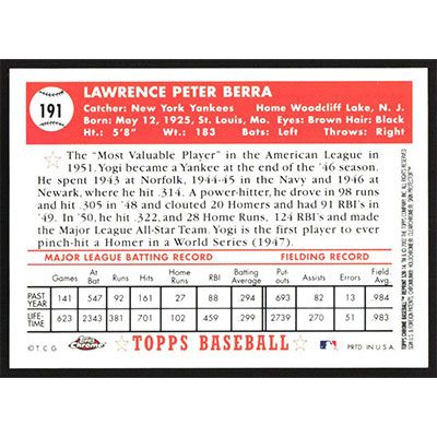 This is a 2002 Topps Chrome '52 Reprints Yogi Berra baseball card. The card is #52R-14 and pictures show condition.