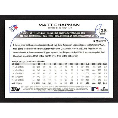 This is a 2002 Topps Chrome Update Matt Chapman baseball card. The card is #USC15 and pictures show condition.