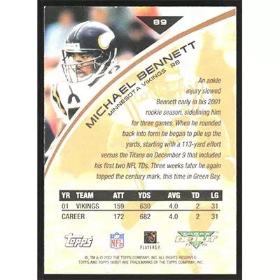 This is a 2002 Topps Debut Michael Bennett football card. The card is #89 and pictures show condition.