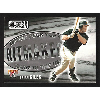 This is a 2002 Upper Deck 40-Man Brian Giles Hitmakers baseball card. The card is #1073 and pictures show condition.