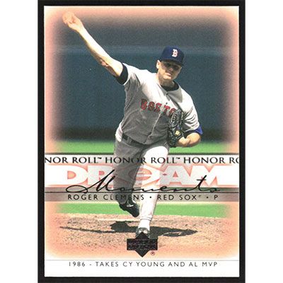 This is a 2002 Upper Deck Honor Roll Roger Clemens Dream Moments baseball card. The card is #65 and pictures show condition.